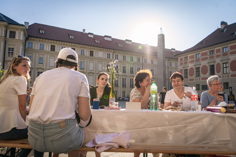 Žádné oficiální pohoštění připraveno není. „O hostinu jde v tom smyslu, že každý by měl doma něco přinést a nabídnout sousedovi. Někdo může upéct bábovku, jiný zase připravit domácí pomazánku. Do piknikového koše stačí jen přidat láhev vína a na záda hodit kytaru nebo housle. Jde o to potkat se u jednoho stolu. Pobavit se, pohovořit, zazpívat si. Prostě proměnit prostor na sídlišti ve slavnost,” pozval ke stolu místostarosta Ivan každého, kdo se chce pobavit.