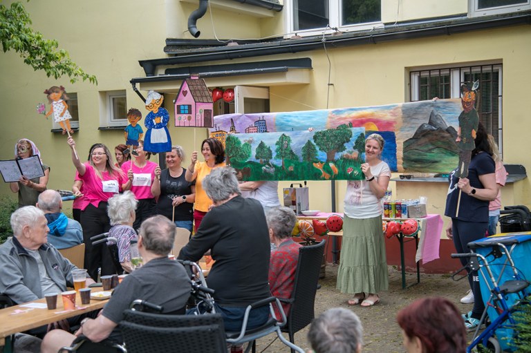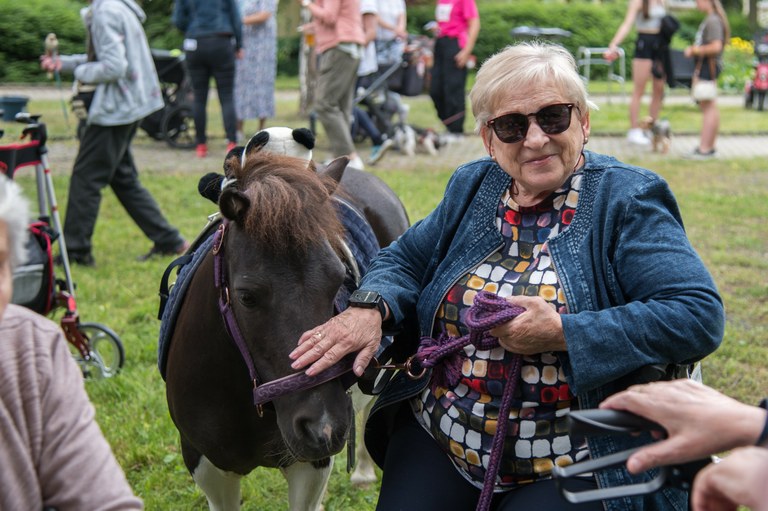 Ředitelka Blahutová dodala: „Text pohádky vymysleli v rámci aktivizace uživatelé odlehčovací služby s aktivizační pracovnicí, herci byli z řad zaměstnanců CSSJ.“ Uživatelé vymysleli i text písničky Dobré ráno na melodii Pec nám spadla, kterou si pak také společně všichni zazpívali. Zkrátka na zahradě bylo veselo celé odpoledne. Pan Duda hrál na harmoniku, děti se vozily na konících, vodily je po zahradě a živě se o ně zajímaly, zatímco senioři si koně hladili a těšili se z jejich přítomnosti. Příznivé počasí přispělo k veselému odpoledni.