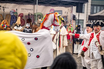 Kozel, medvěd, kobyla, smrtka, stará bába nebo vousatá nevěsta – v neděli 8. února začal masopust a zaplněným Náměstím Ostrava-Jih během dne třikrát prošel průvod roztodivných bytostí.