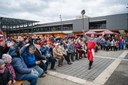 Masopust na náměstí Ostrava-Jih, v pozadí tunel z tří srdcí, 11. února 2024. Foto: Martin Grobe