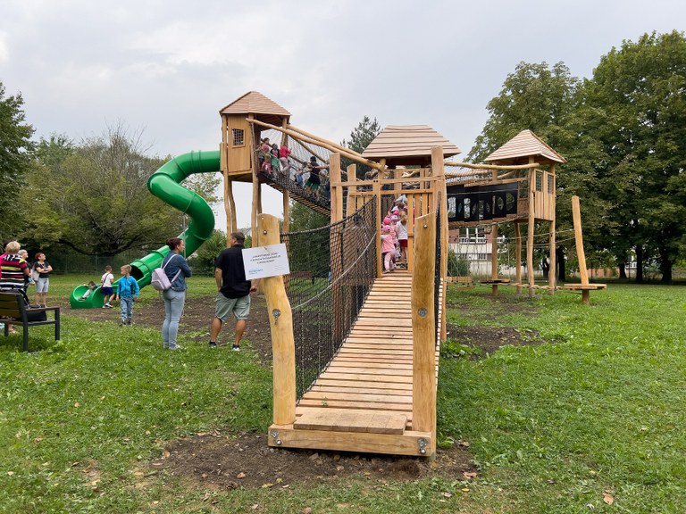 „Na děti zde čeká adrenalinová zábava v dřevěných věžích, žebříky, balanční přechody po lanech a velká skluzavka. Je navržen pro děti od 3 do 18 let. Povolen je i vstup rodičům s mladšími dětmi,“ dodala dále Martina Jarošková.