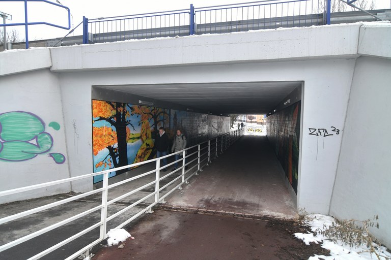 Po podchodech u opravených zastávek Dřevoprodej a Tylova a podchodu pod ulicí Horymírova v obvodu Ostrava-Jih zdobí velkoplošná malba také průchod spojující nejlidnatější městskou část města s obvodem Hrabová, konkrétně ulice Aviatiků a Šídloveckou.