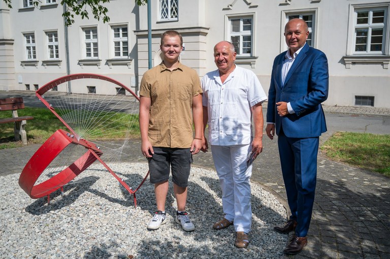 Kovovou plastiku, jejímž autorem je Petr Vacek, student 3. ročníku oboru uměleckého kovářství, převzal začátkem týdne oficiálně starosta obvodu Ostrava-Jih Martin Bednář od ředitele umělecké školy Ave Art Jaroslava Prokopa.