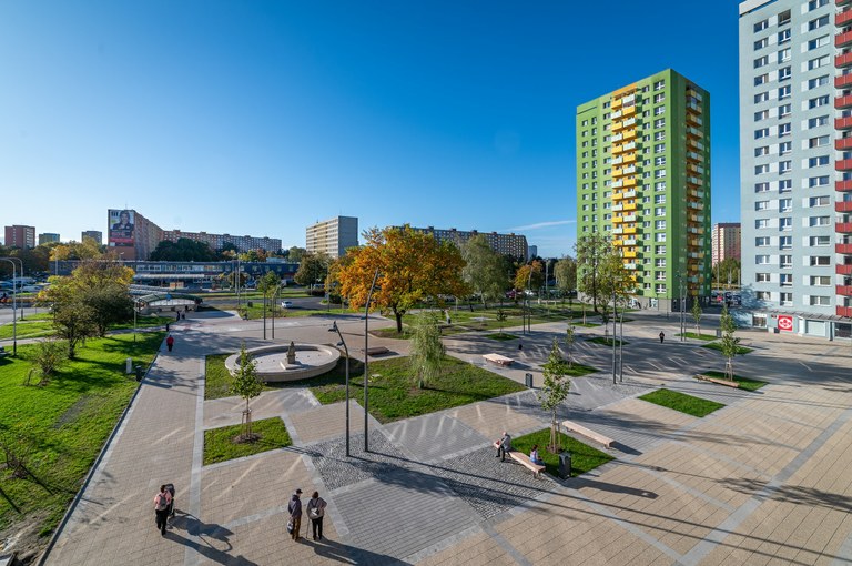 Po měsících stavebních prací a dopravních omezení mohou obyvatelé i návštěvníci polikliniky a Hrabůvky využívat nově upravenou plochu o rozloze téměř 31 tisíc metrů čtverečních.