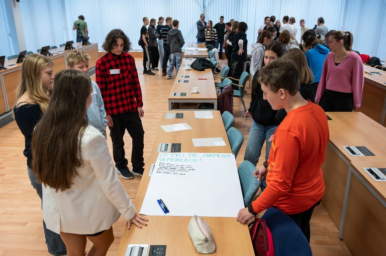 První den patřil přípravě. Debatovalo nejen o pojmech jako je demokracie a svoboda, ale i o tématech, která jsou každodenní součástí života školáků - například bezpečnost v ulicích a dětská hřiště. Program zahájil místostarosta Radim Ivan, který se se školáky pravidelně vídá v rámci Žákovského parlamentu Ostravy-Jihu.